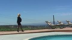 Robin Pachino é uma loira muito sensual que passa o dia nua na piscina para excitar seu amante com seu corpo gostoso e, em seguida, eles fodem!