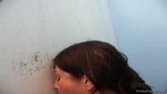 Ela é uma bela morena que hoje vai ter a sorte de entrar em um banheiro público em que há um gloryhole para ela desfrutar, não perca!
