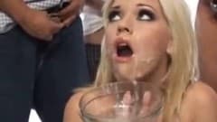 Esta é uma loira muito gostosa que consegue beber um quantidade grande de esperma!