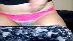 Esta linda loira tem a boceta muito apertada com sua roupa interior. ela abre as pernas para se masturbar por cima da cueca.
