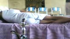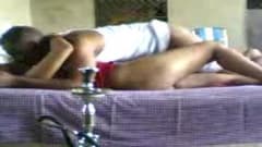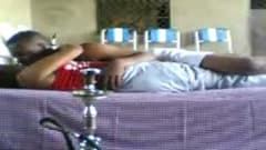 Este casal vai ficar completamente relaxado depois de fumar uma chicha. Ela tira a roupa e vaia par ao sofá para transar com este negro.