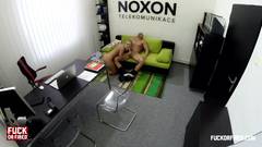Esta loira está disposta a transar com o seu chefe no trabalho para que ele aumente o ordenado. Ela vai adorar a rola dele.