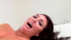 Morena masturba-se no sofá branco