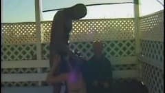 Esta jovem cadela morena tem um trio com um anão e um negro cuja piça é tão longa quanto a de um burro.