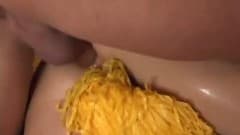 Homem maduro vai ter a oportunidade de comer uma linda lider de torcida.