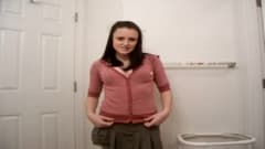Esta morena adora estar no banheiro e se gravar com a câmera enquanto tira a roupa para se exibir seu corpo. Assista.