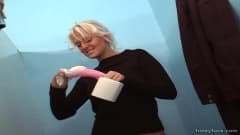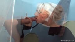 Esta loira quer chupar um desconhecido, escondido atrás da parede. Ela vai divertir-se imenso com este pénis na boca ! Um puro momento de sexo.