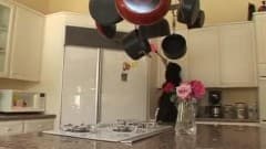 Uma Latina realmente sexy e jovem se expõe a um convidado e não leva muito tempo até que ela leve o pinto dele em sua buceta.