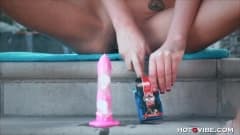 Brett Rossi é uma loira deliciosa e sensual que anda a beira da piscina e ela vai divertir-se imenso com uns brinquedos sexuais que lhe ofereceram.