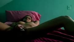 ![Morena peituda desfruta de seu corpo com brinquedos Morena peituda desfruta de seu corpo com brinquedos]()