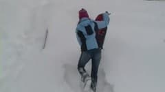 Esta menina que está na neve vai marcar uma pausa para masturbar-se.