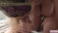 Esta francesa não quer ser reconhecida, pois é muito famosa. É por isso que ela chupa e masturba este cara com uma mascara!