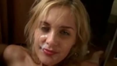 Esta loira tesuda gosta de ficar com seu rosto pegajoso e nesta cena vamos vê-la chupando com força suficiente para fazê-lo ejacular em seu rosto.