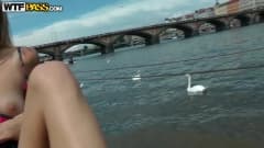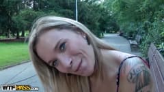 Hoje vamos ver Anjo Piaff masturbando-se ao ar livre. Ela brinca com os seus dedos enquanto está sentada no meio da rua. Ela é uma marota !