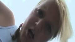 A cona desta jovem loira é fodida aqui muito em breve pelo pinto enrugado desta velha foda