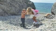 Esta bela loira quer ter uma experiencia sexual diferente, por isso, foi para a praia com este cara para transar no mar e em cima das rochas