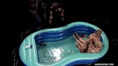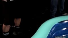 Sera que vai conseguir lutar com estas duas fúrias ! O arbitro está bem concentrado ! Que coisa mais sensual e divertida !