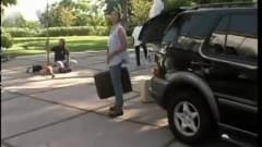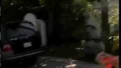 Esta bela morena está disposta a fazer um filme pornô com um motorista de limusine. Enquanto preparava tudo, ela sobe no teto do carro para transar com ele.