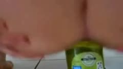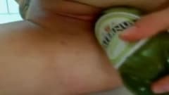 Um pouco especial esta amadora! Hoje, ela enfia uma garrafa de cerveja gelada na vulva! Uma masturbação feminina a não perder!