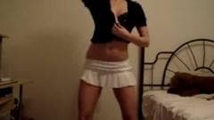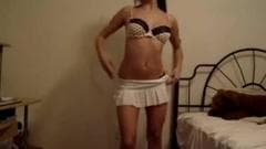 Esta linda morena amadora nos da um strip tease ultra-sexy mostrando seu corpo bonito com belos peitos pequenos.