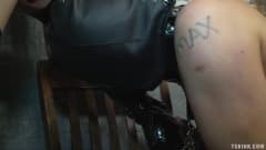 Esta bela travesti adora que lhe obedecem e uma vez que seu escravo esta amarado, ela chicoteia-o para o exitar antes de fode-lo!