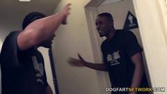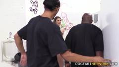 Brooklyn Chase vai para a casa de banho e vai ter a sorte de encontrar dois homens prontos a curtir o momento ! é uma delicia em streaming.