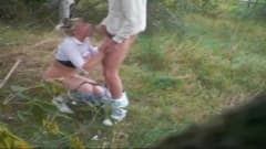 Esta loira alema vai chupar o grande pau deste homem e depois vai ser fodida estildo cachorrinho ao ar livre! Uma boa foda amadora!