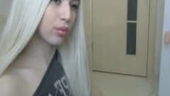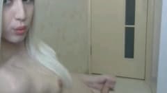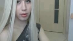 Esta shemale loira adora se filmar com sua webcam enquanto ela brinca com seus dildos, como este grande rosa que ela adora sugar!