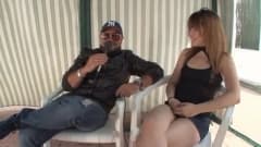 Esse cara vai transar com esta ruiva sem piedade em cima das escadas e a bela jovem tem muito prazer com este pau!