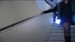 Esta loura bonita mal pode esperar e suga uma rola bem dura nas escadas antes de ser fodida em seu sofá. Uma cena a nao perder em Boafoda!