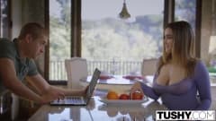 A tesuda Natasha Nice veste uma roupa sexy que permite admirar seus seios enormes enquanto é fodida por um pau grande.