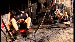 Toda vestida de couro e acorrentada a máquinas de tortura, a bela Monique Covet é forçada a chupar um pau grande antes de ser fodida.