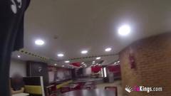 Esse cara não lhe falta coragem e convida esta loira para ir com ele para seu quarto para sugar seu grande pau e fode-la profundamente.
