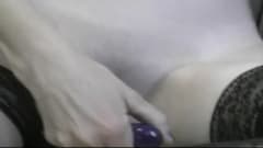Esta bela Milf acaricia seu bichano molhado com um grande vibrador en frente a um voyeur que saliva ao vê-la se masturbar!