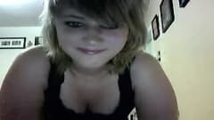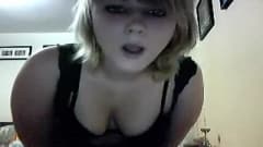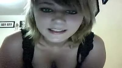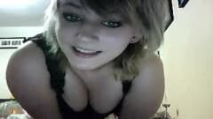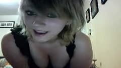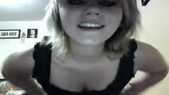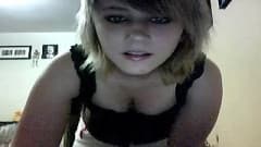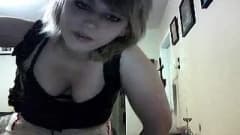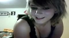 Esta bela loira tem olhos encantadores e um belo par de seios que ela adora mostrar con un decote instalada en frente a webcam.