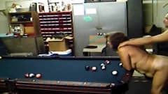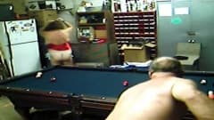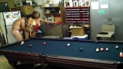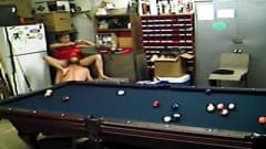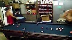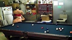 Este casal gosta de jogar bilhar e comemorar cada bolacom um boquete, um pequeno cunnilingus ou uma foda estilo cachorrinho