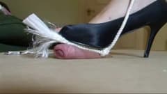 Cuidado, este pénis vai sofrer um pouco com esta mulher que vai pegar nele para o amarrar e o esmagar com o tacao dos sapatos ! é mesmo muito bom !
