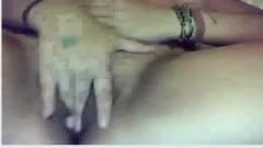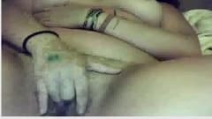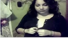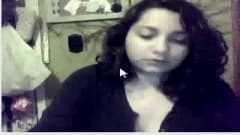 Esta linda e sedutora morena mostra seus peitos grandes na webcam acariciando-se antes de gemer de prazer masturbando sua buceta.