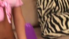 Esta loria adora se masturbar em frente da camera com um grande dildo violeta e gemer intensamente de prazer. Assista.