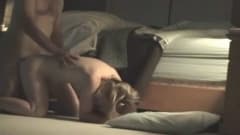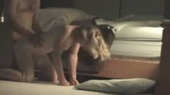 Esta bela loura soltou gemidos de prazer quando sentiu o grande pau de seu homem a entrar e sair em sua vagin em estilo cachorrinho.