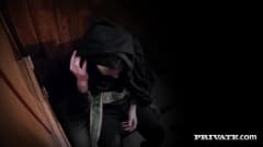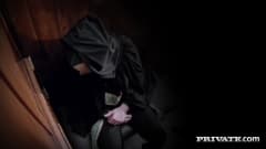 A bela loira Rebecca Moore vai se confessar na igreja com o padre e vai ter uma bela surpresa ao ter uma rola saindo pelo buraco do confessionario.