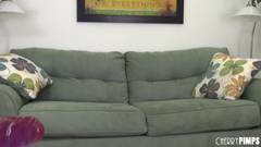 A bela loira Aaliyah Love deixa você admirar sua bunda gostosa e mamas firmes pequenas, enquanto ela se masturba no sofá.