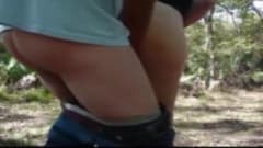 Este casal maduro adora passear na floresta e parar para se masturbar e transar ao ar livre, gemendo de prazer.