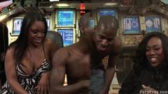 Estas duas belas negras agitam suas bundas grandes e seios grandes debaixo do nariz do cara que vai fode-las como nunca com o seu grande pau negro.