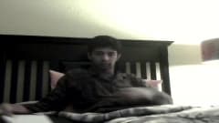 Esse cara instala-se confortavelmente na cama em frente a webcam e começa a masturbar sua rola ate a ejaculação final.