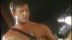 Steve Pierce usa um vibrador enorme para enfiar na bunda dilatada de Tom Chase que esta se masturbando e gemendo de prazer.