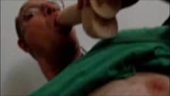 A principal paixão desse velho gay é filmar-se enquanto ele acaricia seu grande pau duro com um vibrador na bunda.