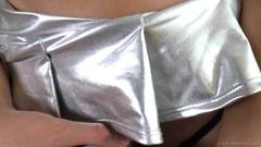 Venha se masturbar ao mesmo tempo que esta bela transexual que mostra seus seios redondos, enquanto ele acaricia seu pênis com um dildo no cu!