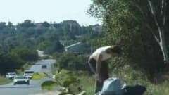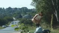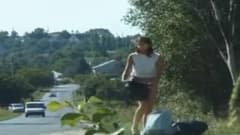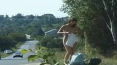 A solução rápida para pegar carona? Se por toda nua! Mas so quando somos tesudas como essa garota. Os carros param logo!