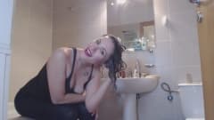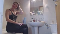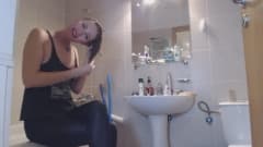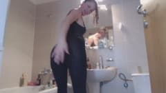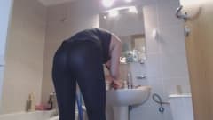 Admire a bela loira enquanto ela se prepara no banheiro deixando voce desfrutar de sua bunda gostosa moldada dentro de uns collants pretas!